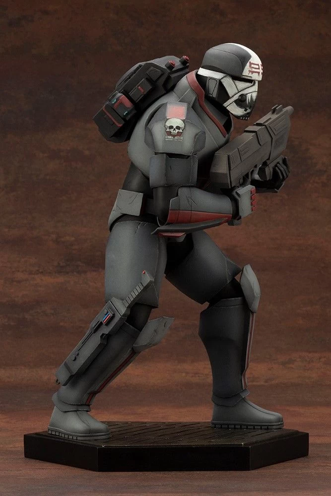 From the popular animated series streaming on Disney+, Star Wars™: The Bad Batch, Kotobukiya presents a series of 1/7 scale Figure! Due to genetic mutations, Wrecker™ is much larger and stronger than the average soldier, with enough strength to lift up a gunship. Although he can be brash, Wrecker also has a sense of humor. Wrecker’s helmet features the iconic fanged skull design and the unit number “99” on the brow. A large knife is also sheathed on his right leg! The finer details and textures from the series such as the backpack are fully recreated based on the 1/7 scale. An interchangeable head part without the helmet is also included. The base is of a hexagon shape design that will be standard to all future characters in this series so fans can enjoy lining them up together on display.