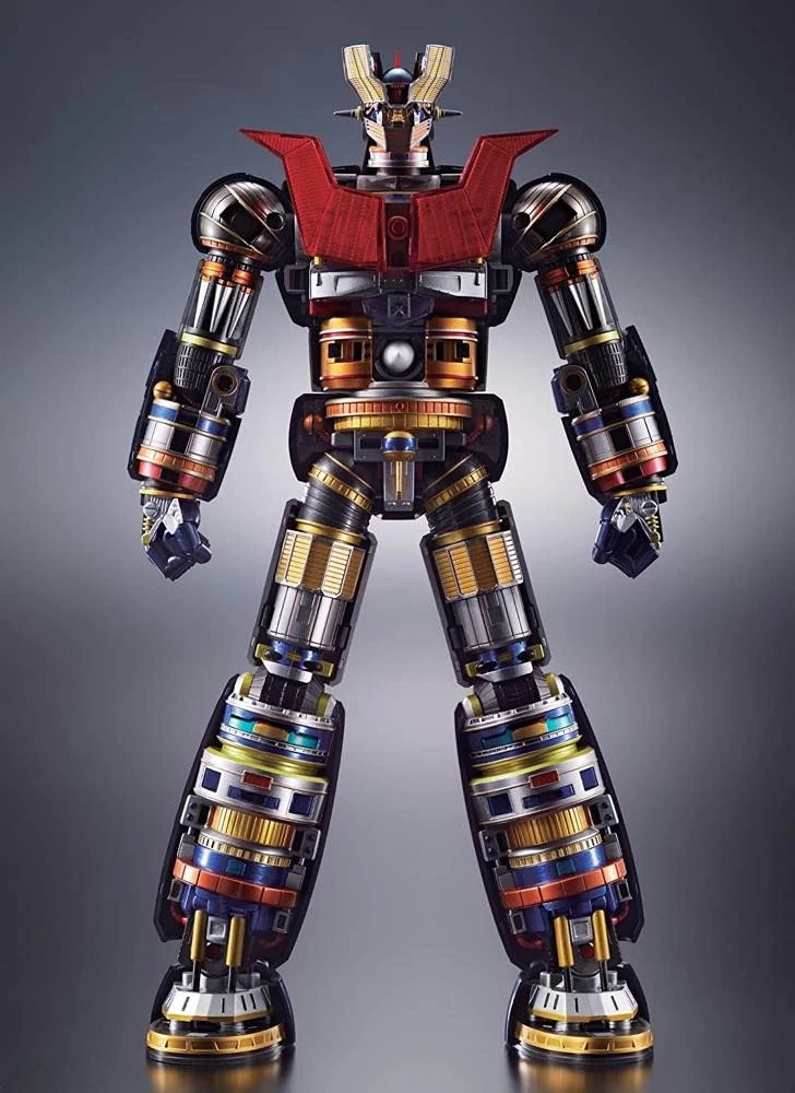 Forty years after the birth of Mazinger Z, fifteen years after the debut of the Soul of Chogokin, the DX Model represents the cutting edge of history. This large scale product towers nearly two times the size of previous Soul of Chogokin and Super Robot Chogokin toys, standing at roughly 300mm (12 Inches), and incorporating revolutionary new features for the Soul of Chogokin series including detailed mechanical inner workings, first time ever light-sound gimmick, and a full hangar facility for total storage.
