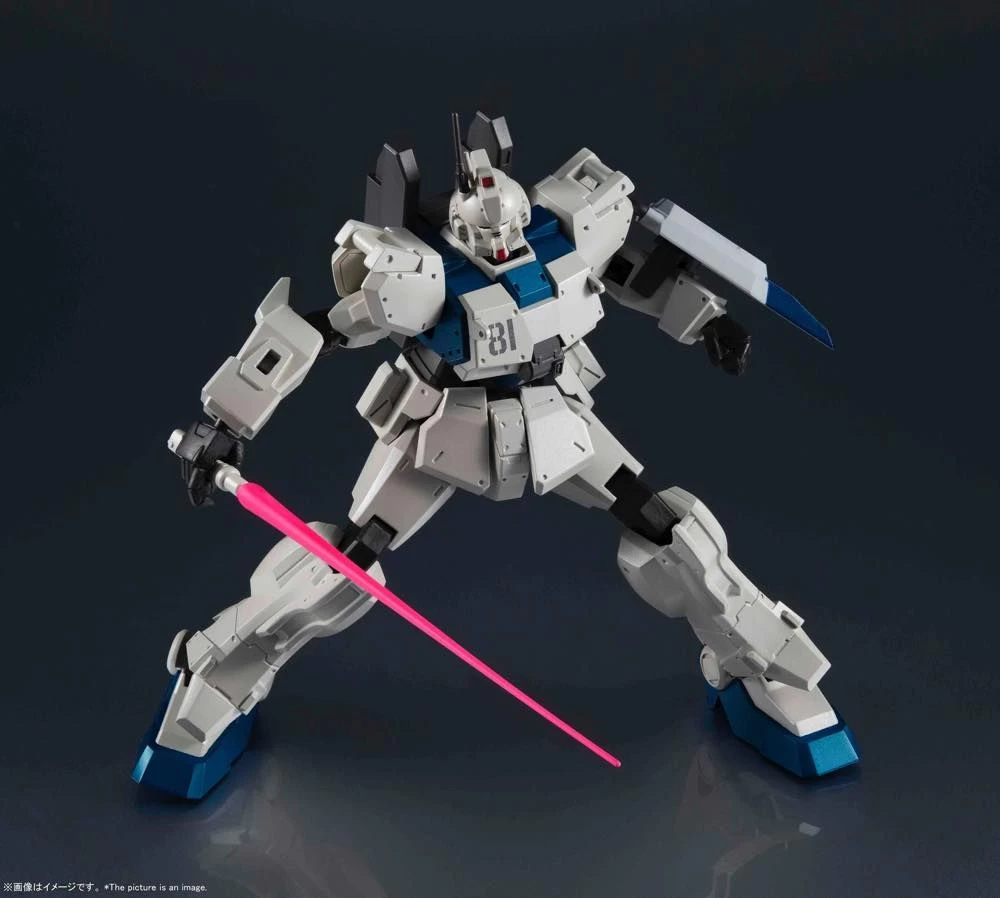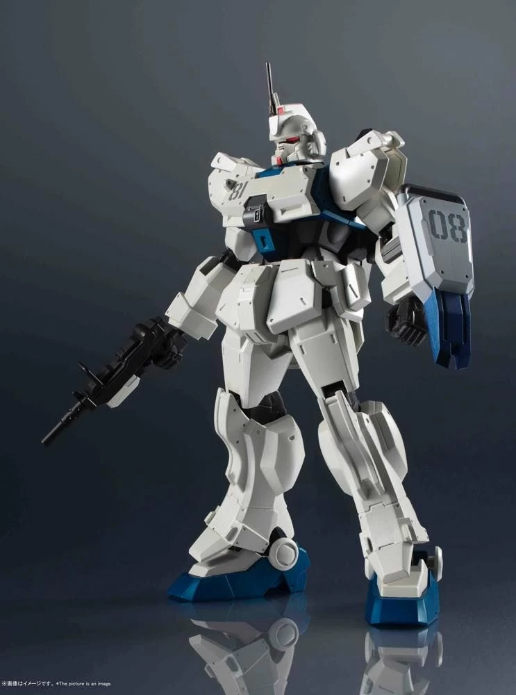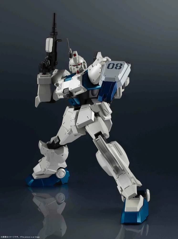 This variant of the Gundam Ground Type built from spare parts made a name for itself under the pilot Shiro Amada. Part of the third wave of figures added to the popular and highly posable GUNDAM UNIVERSE line developed for North America, and enjoyed all over the world. This figure of the Ez-8 immortalizes the classic mobile suit! It includes two beam sabers, rifle, shield, an optional pair of hands, a 100mm machinegun, and a Tamashi STAGE connector joint.