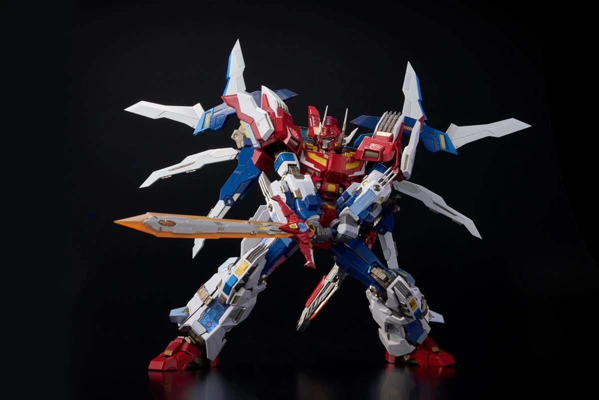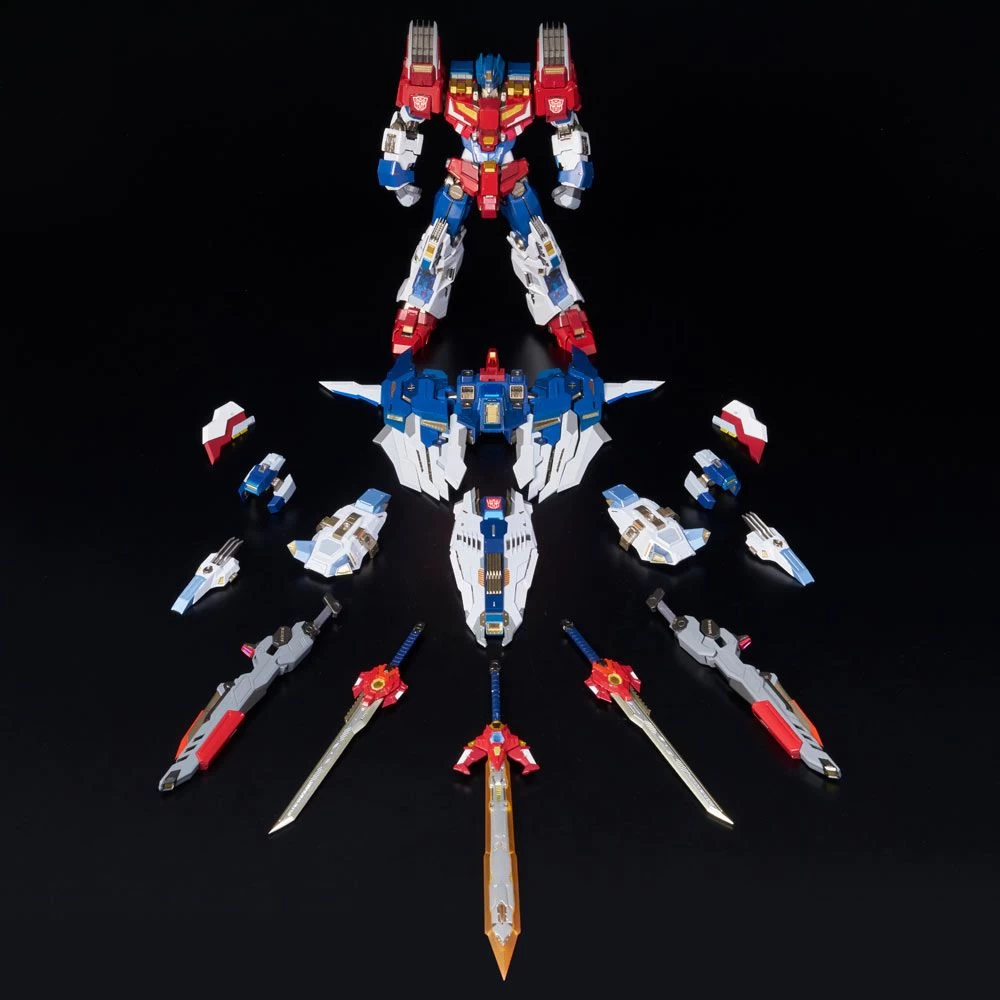 A member of Autobot Brainmaster, the Supreme Commander of the Autobots, “Star Saber” is presented in Flame Toys [KURO KARA KURI] series! As the greatest swordsman in the universe, this time he will come with 2 small swords, a big sword and a shield as the new weapon parts. 2 Interchangeable heads, Star Saber version and Mask off version, are available! Star Saber version head is installed with LED. 6 LED units packed in a 21cm tall body. Able to combine with “[KURO KARA KURI] Victory Leo” to form “[KURO KARA KURI] Victory Saber”. Super-poseable with die-cast for solidity and heaviness!