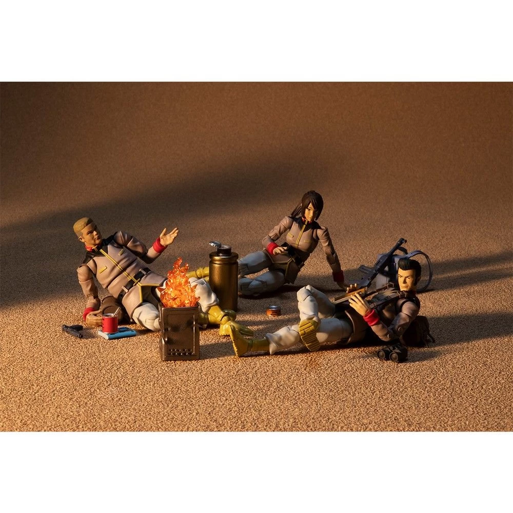 The second set features three soldiers from the Earth Federation Forces – two male and one female of various builds are in the line-up. Each figure is approximately 10cm in height (around 1/18th scale) and is fully articulated for all sorts of different poses.