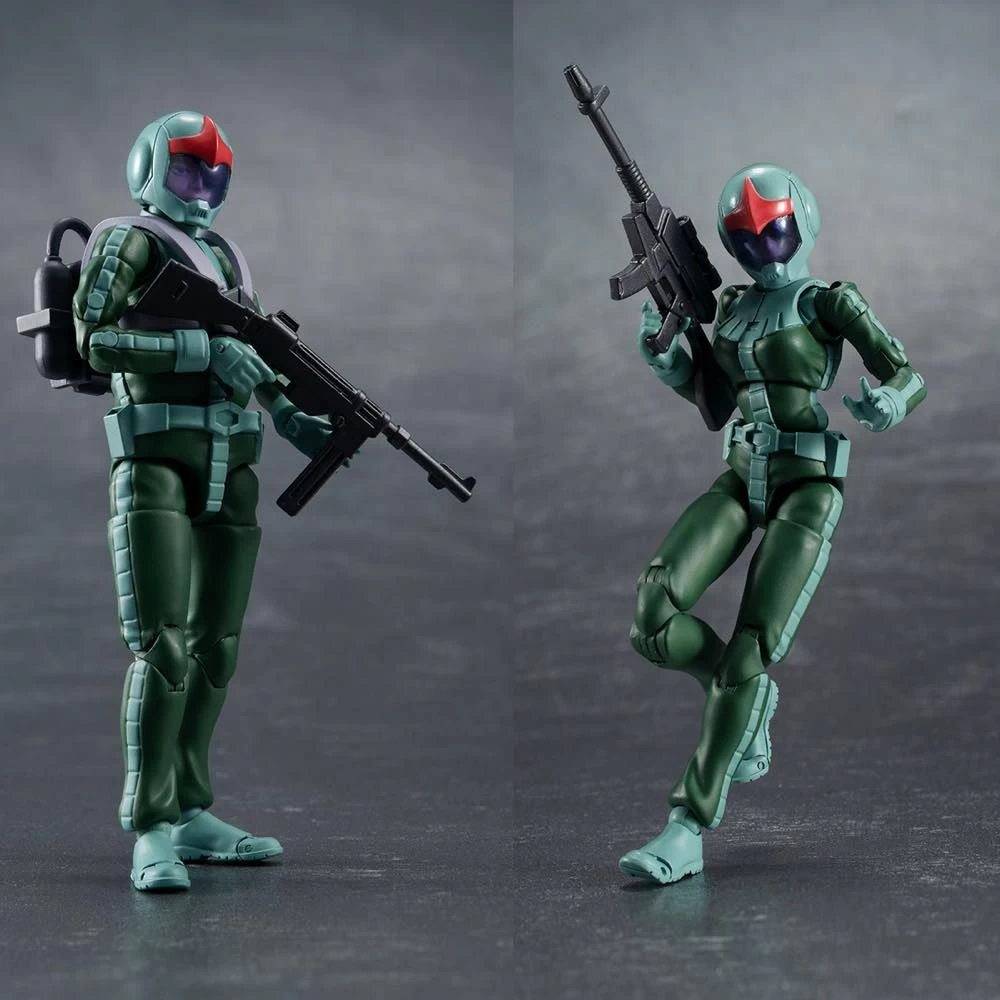 Displaying Standard Infantry 04 and 05 together with Char will enable you to pose them infiltrating an Earth Federation Forces base! Be sure to display them with the other soldiers previously released in the G.M.G. series for even more display opportunities!