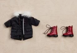 Presenting a clothing set featuring a pair of lace-up boots and a coat! A pair of lace-up boots and mod coat for use with Nendoroid Doll figures. Combine with other Nendoroid Doll Outfit Sets to create the perfect autumn/winter look!