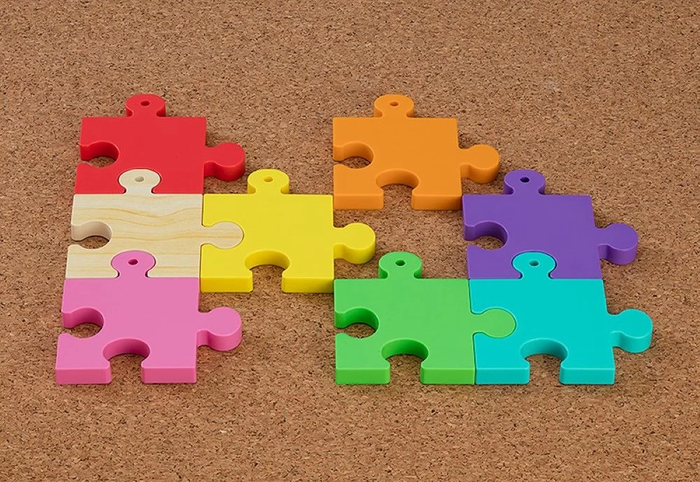 Connectable puzzle piece Nendoroid bases are here! The Nendoroid More series was created to make Nendoroids even more enjoyable! The next item in the series is a collection of connectable puzzle-piece-shaped Nendoroid bases! In addition to 7 brightly colored piece inspired by toy building blocks, the series also features a wood grain design piece for a total of 8 varieties. Connect pieces in any direction and enjoy displaying your Nendoroids together! This product will be made at Good Smile Company’s ‘Lucky Factory’ in Tottori, Japan. The product will be proudly ‘Made in Japan’, and sent all over the world for fans to enjoy!