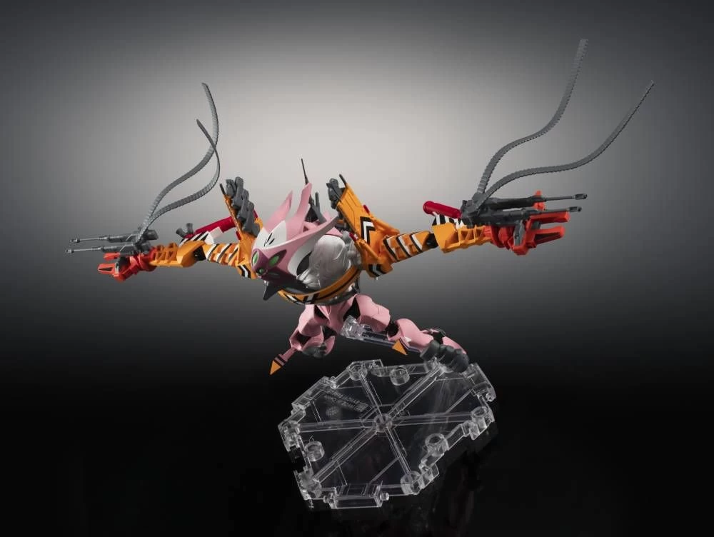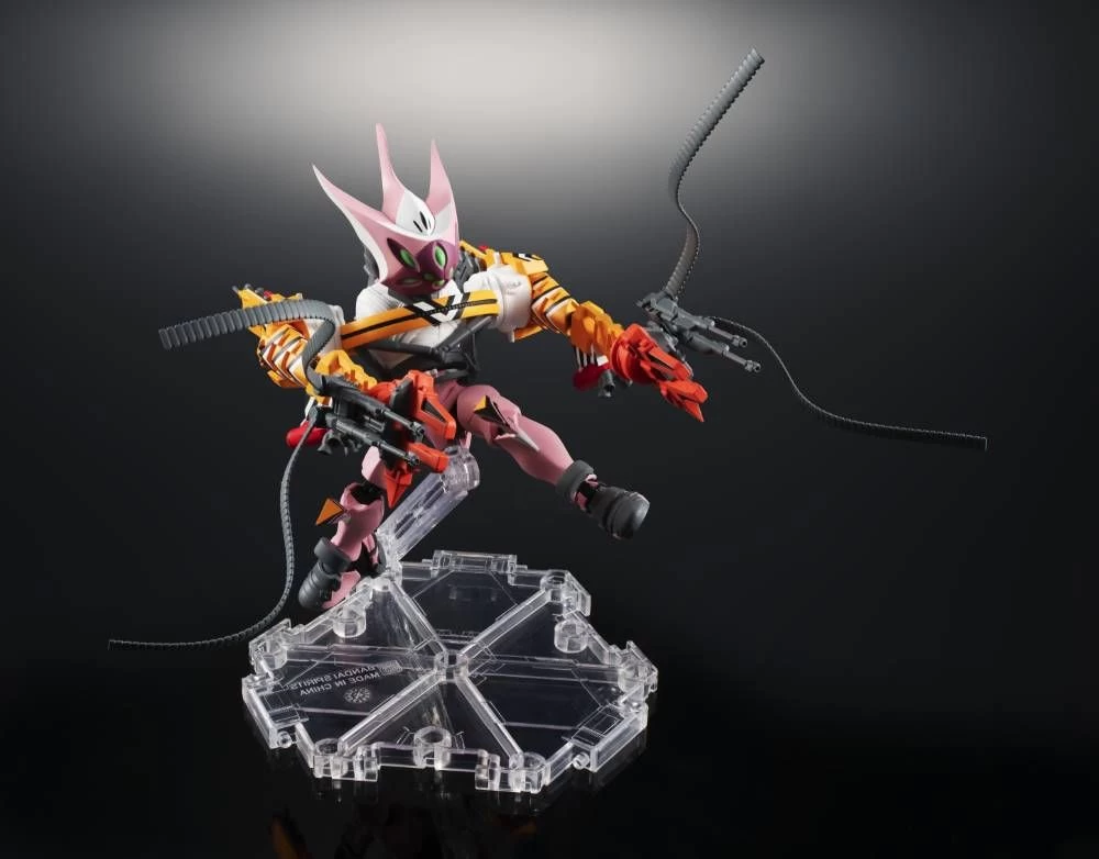 The Evangelion Type-08 β-ICC (improvised combat configuration), as seen in glorious aerial combat in new movie joins NXEDGE STYLE! Meticulous sculpting and more than twenty points of articulation make this figure a must-have for dramatic displays. The set includes two Gatling cannons, four bandoliers, and a stand.