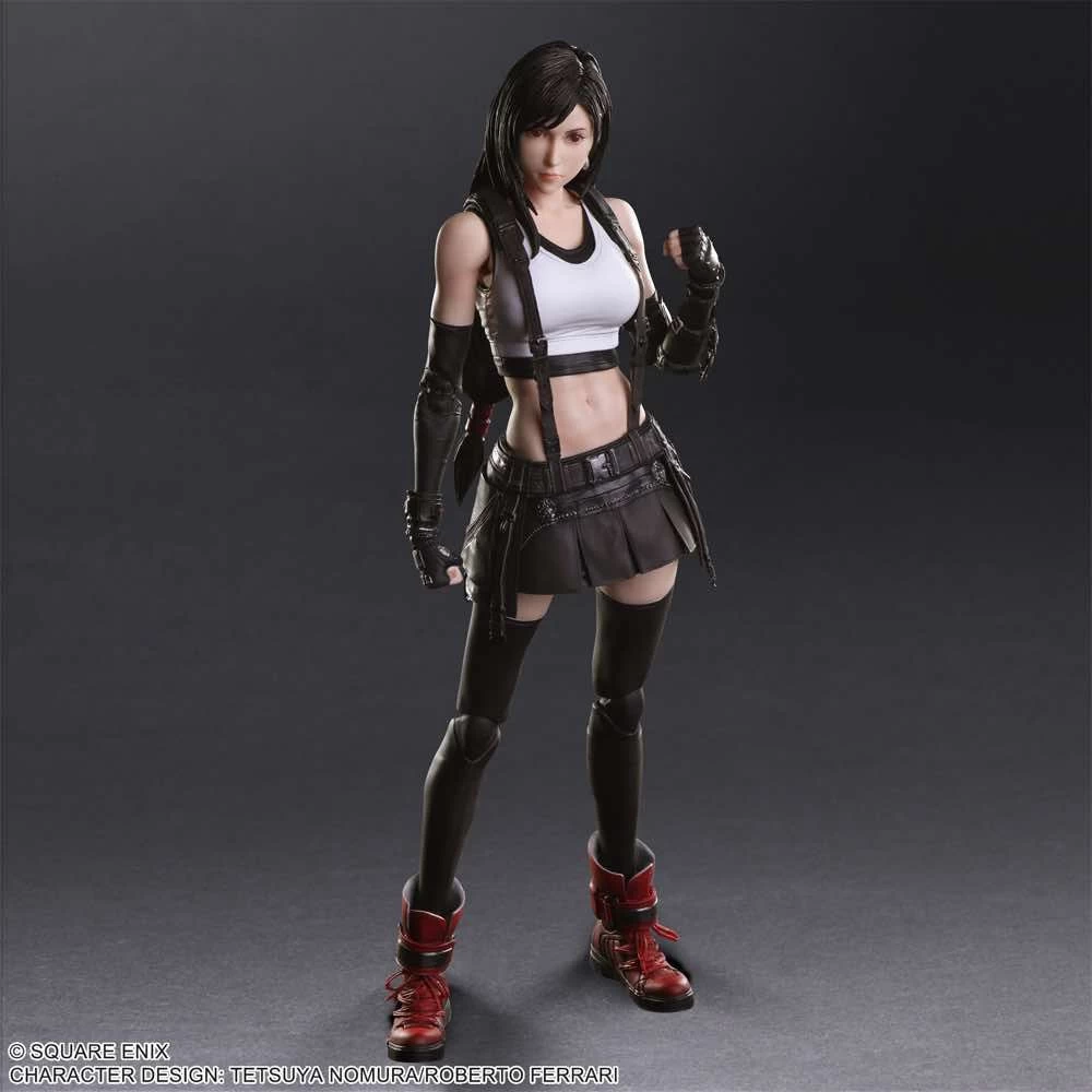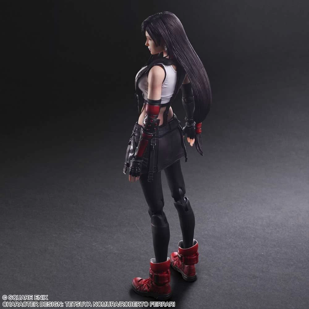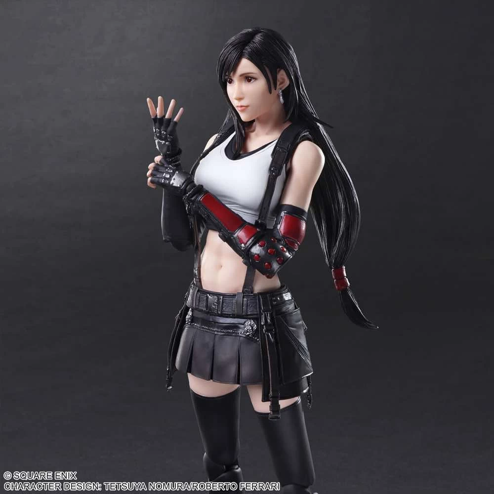 From FINAL FANTASY VII REMAKE, Tifa Lockhart, a member of the anti-Shinra organization, makes her appearance as a PLAY ARTS KAI figure! We have faithfully recreated all the details that were updated and made more intricate for REMAKE – from her hairstyle and earrings to her costume – to pursue a very realistic design. We utilized updated joint parts in her elbows and knees, to allow for a wide range of motion.