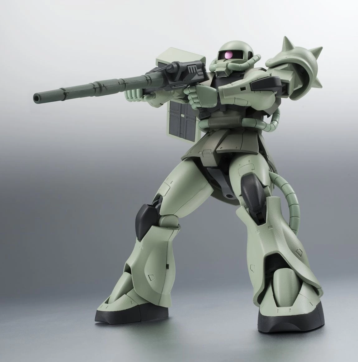 “A.N.I.M.E. (standing for Action New Imagination Memory Emotion) is a new series that revives 35 years of Gundam history using the latest technology to create an unprecedented level of high-quality ROBOT SPIRITS. With a prominent presence in the anime, it is only natural that the mass production Zaku would be next to join the line-up. The front armor parts have been created as separate parts that allow for superior range of articulation and posing.
