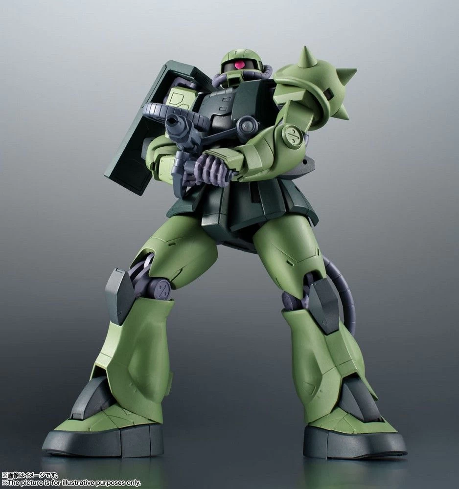 [Set Contents]Main Body, Four pairs of optional hands, Hand storage deck, 120mm ZAKU Machinegun, Zaku Bazooka, Heat Hawk (ignited), Heat Hawk (stored), Optional shield cover, Various connector joints, Two thruster effectsHeight: 125mm