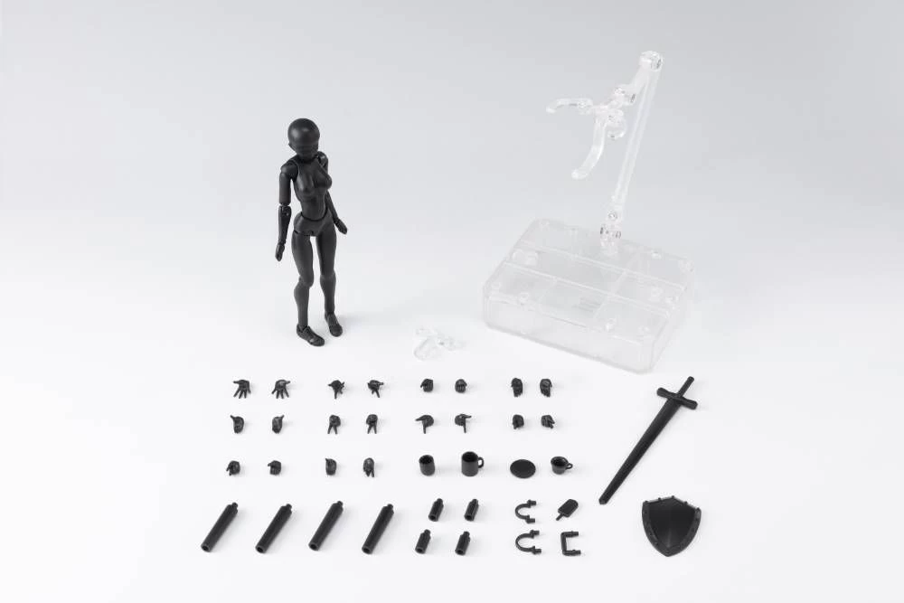 Incredible posability for amazing action scenes! An all new version of the BODY -CHAN DX figure is here as a deluxe (DX) set! Superb articulation lets you capture all your favorite poses. And a huge variety of accessories lets you re-create scenes ranging from comedy to action to high drama. The set includes a figure, nine left and eleven right optional hands, sword, shield, teacup, plate, mug, Japanese teacup, ice cream, four long support rods, four short support sods, movable support rod, Tamashii stage, storage box, two types of hand racks, and mini book.