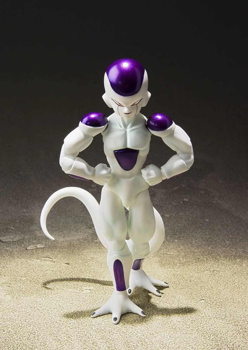 “I am the mighty Frieza, and all of the horrible stories you’ve heard are true!” From the anime Dragon Ball Super comes the wild and wildly powerful Frieza! His ancient yet ageless evil charm is captured in this action figure, letting fans replicate famed scenes from the series! The figure includes four pairs of optional hands, one set of optional arms, one set of optional legs, angel’s halo, two optional expressions, tail, two effect parts and one effect part stand, plus a custom base (with a plate, support arm, and clip).