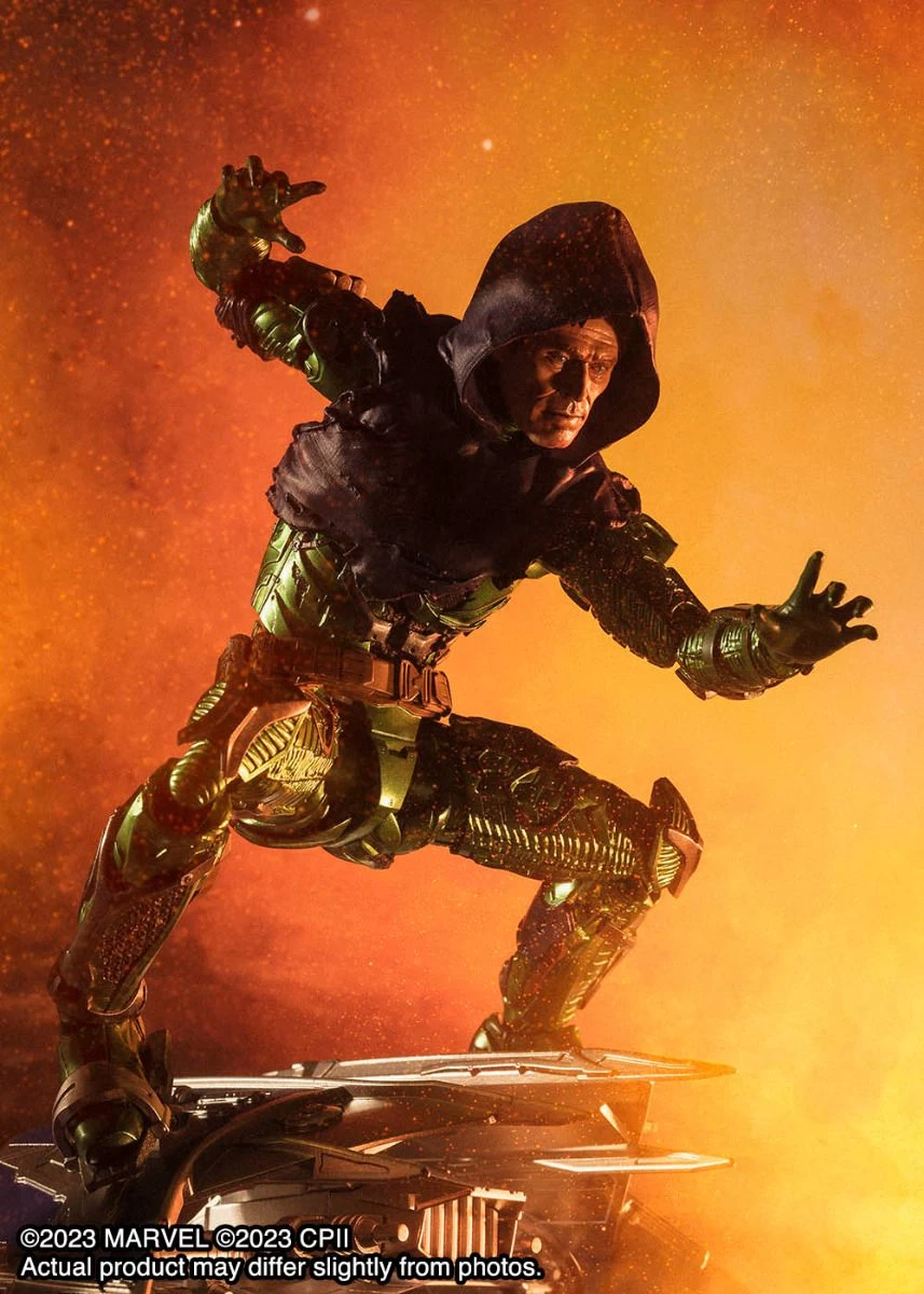 Spider-Man’s arch-enemy, the Green Goblin (as seen in SPIDER-MAN: No Way Home) joins S.H.Figuarts! Tamashii Digital Coloring accurately replicates his new costume, and the set even comes with a detachable hood and pair of removable sunglasses to replicate your favorite scenes! The glider features moving parts allowing you to replicate its appearance in different modes.