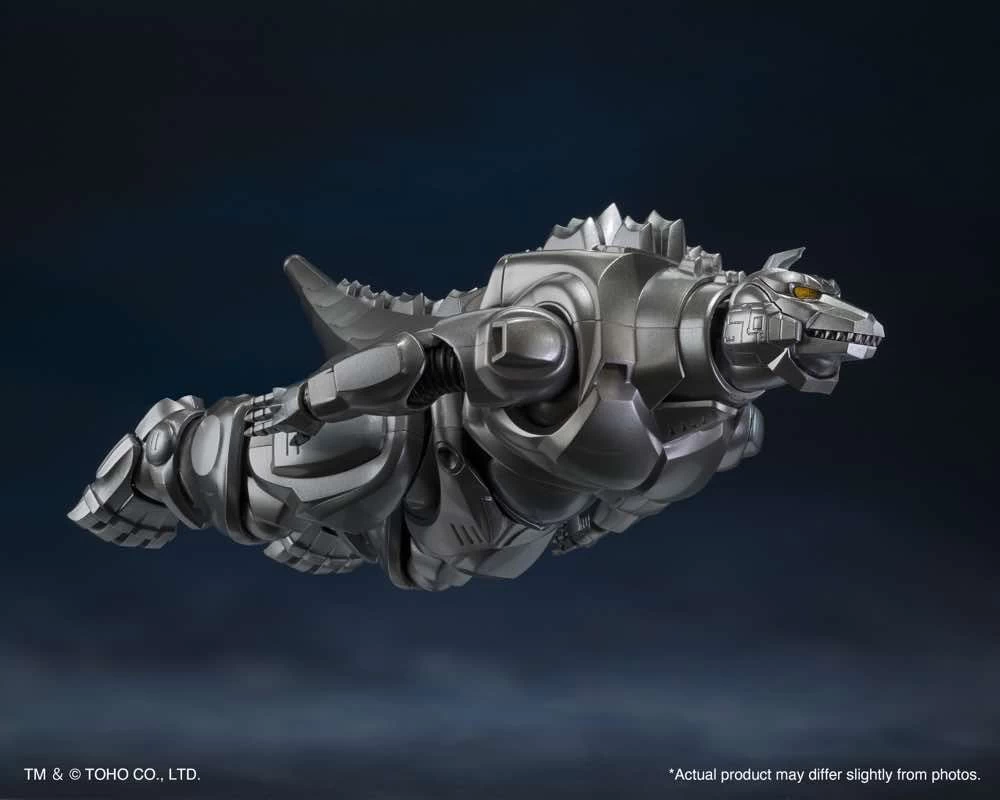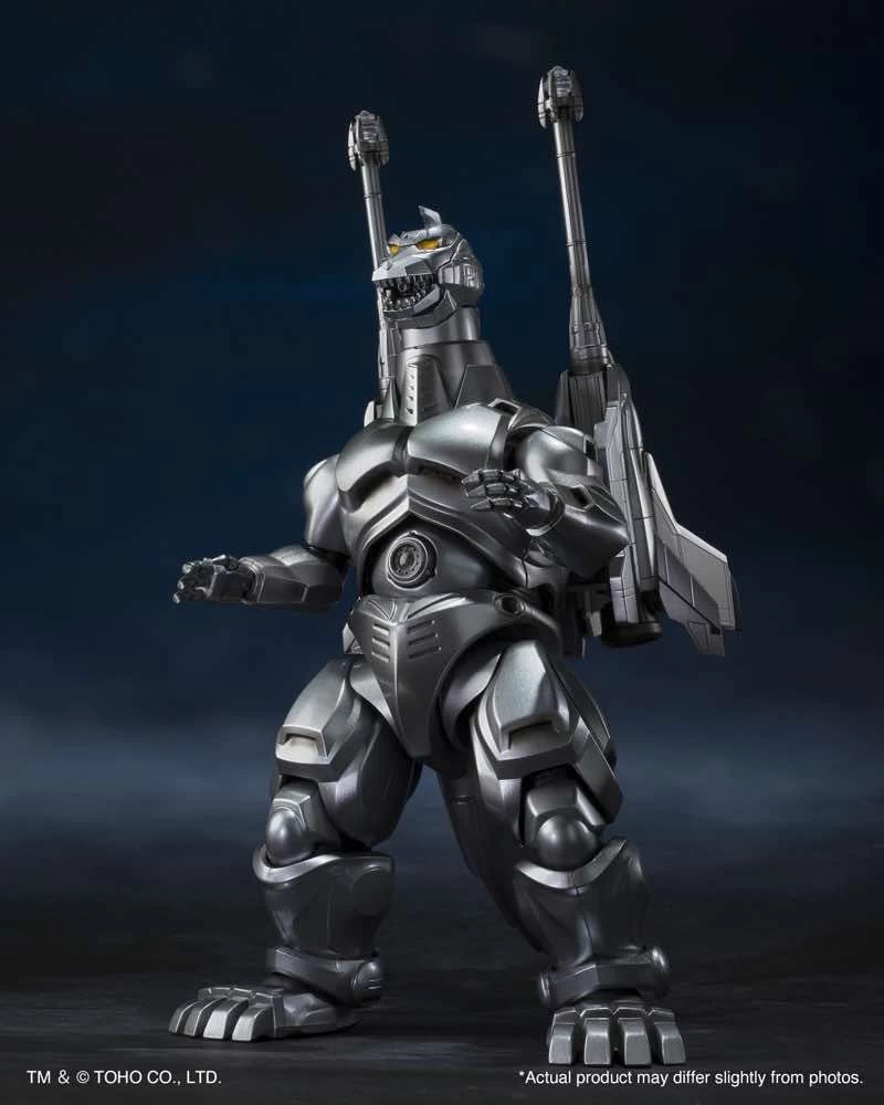 [Accessories] MECHAGODZILLA includes an optional plasma grenade launcher stomach part, and 450mm long G-Crusher cable weapons, allowing you to re-create dramatic moments from the film. Optional hands allow you to display it in flight configuration. [Set Contents] MECHAGODZILLA, Optional hands, GARUDA, Optional stomach part for MECHAGODZILLA, G-Crusher cable set, GARUDA attachment part, GARUDA stand, FIRE RODAN, Damaged head for MECHAGODZILLA, FIRE RODAN stand