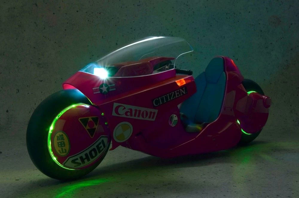 Kaneda’s bike from the global anime hit AKIRA is about to explode into collections worldwide! This renewed edition comes 11 years after the first release: an incredibly accurate, heavy weight, and highly detailed portrayal of this iconic high-tech motorcycle. The front suspension, which is accentuated with chrome detailing, accurately flexes; pressing the accelerator pedal triggers an engine sound, while pressing the brake pedal triggers a tire-squealing effect. You can even connect it to external speakers for immersive, high-quality audio playback! (Note: the product itself is the same as that released in 2010.)