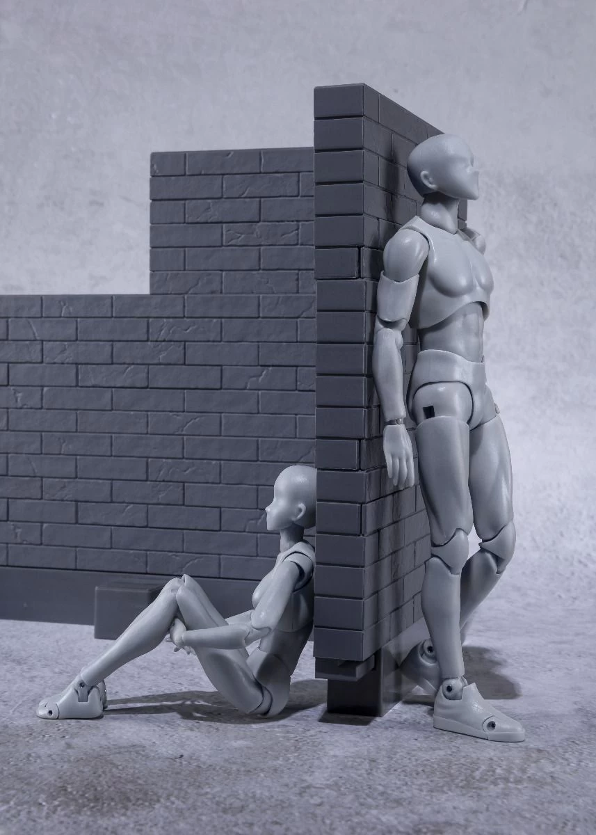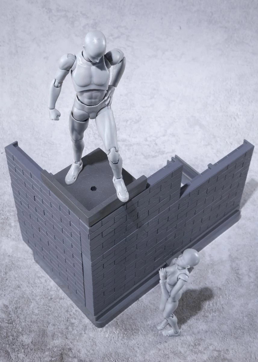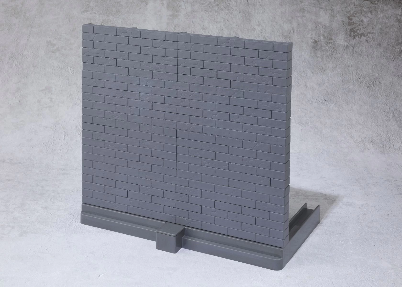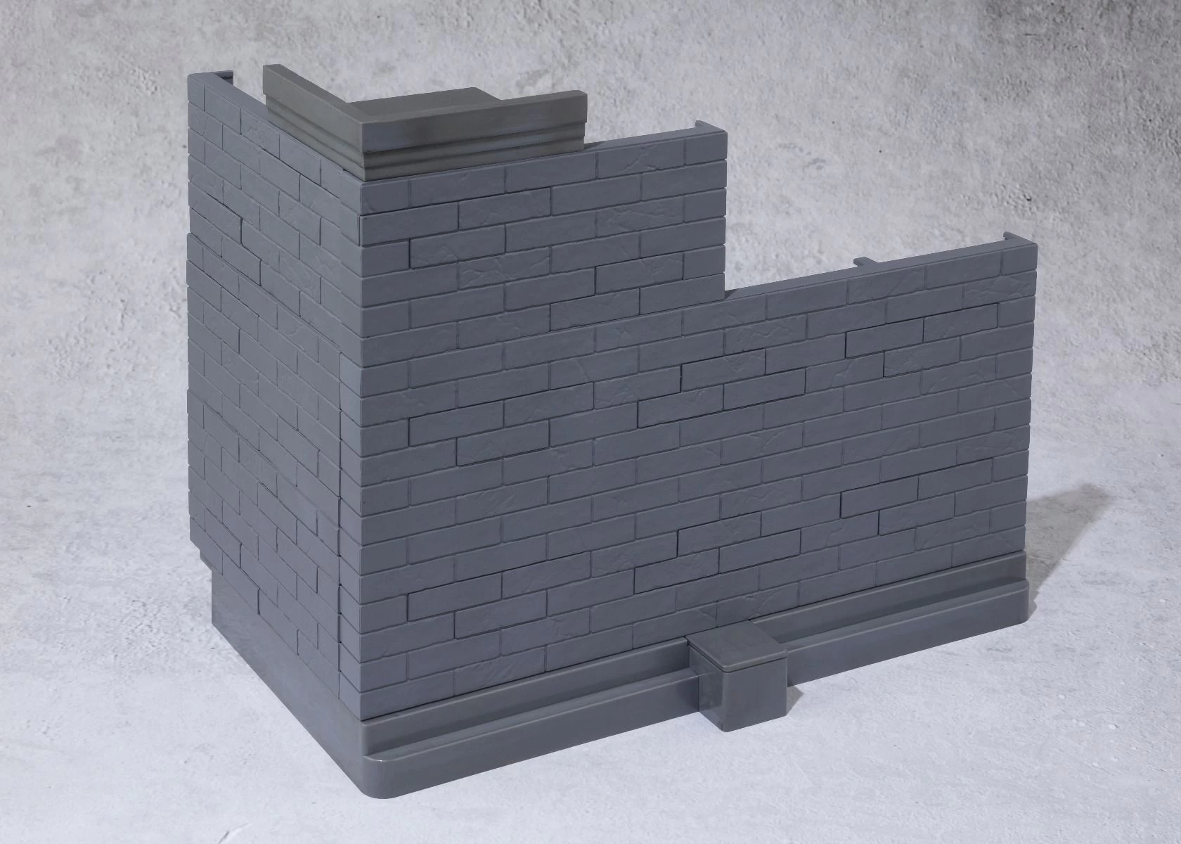 An assembly set of a brick wall that you can build in various configurations to expand your display possibilities! Re-create famous scenes or make your new ones — the opportunities are endless. Combine it with the Brown Ver. (sold separately) for even more variations. The assembled wall stands 8.6in high at its tallest. Note that the set does not include figures. The set includes wall parts (large)×2, wall parts. A (small)×2, wall parts B (small)×2, display stand part, rooftop part, wall support part A, wall support part B, a display support clip and arm.