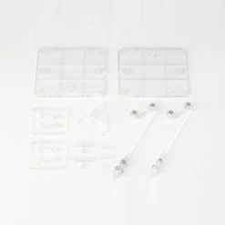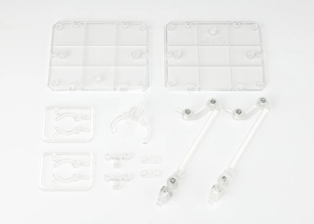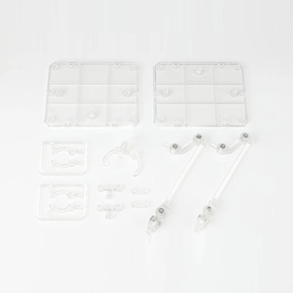 The set includes stand bases x 2, articulated support arms x 2, joints x 2, articulated clips and joints x 2, clips for figures x 2, triple jointed support clip base.